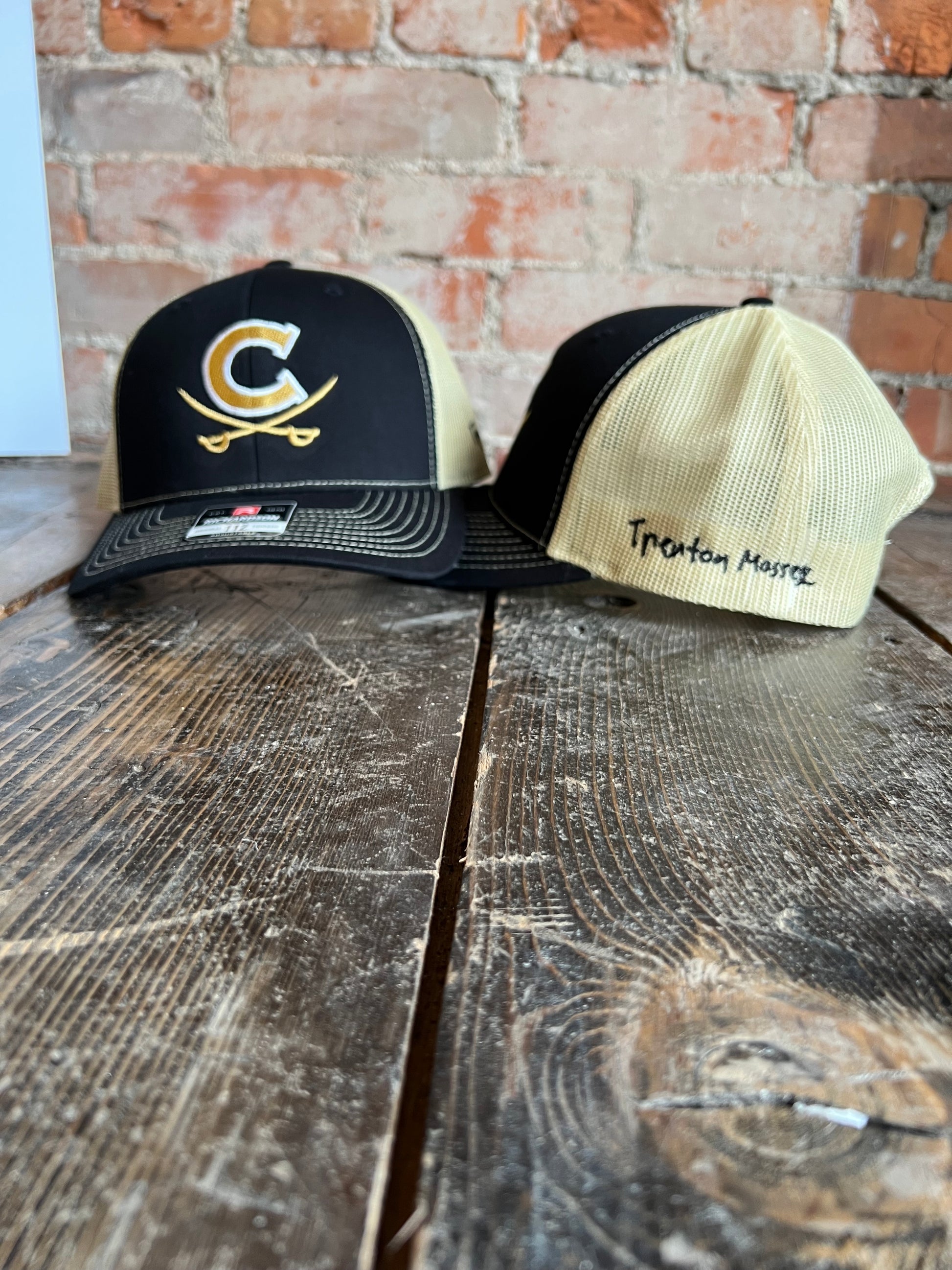 Support the Massey family with this premium Richardson 112 snapback hat, featuring the Corunna C & Swords logo and Trenton's embroidered signature. Crafted with quality materials and attention to detail, this collectible cap lets you show your Cavalier pride while making a meaningful difference. A portion of proceeds benefits the Massey family—wear it with purpose.